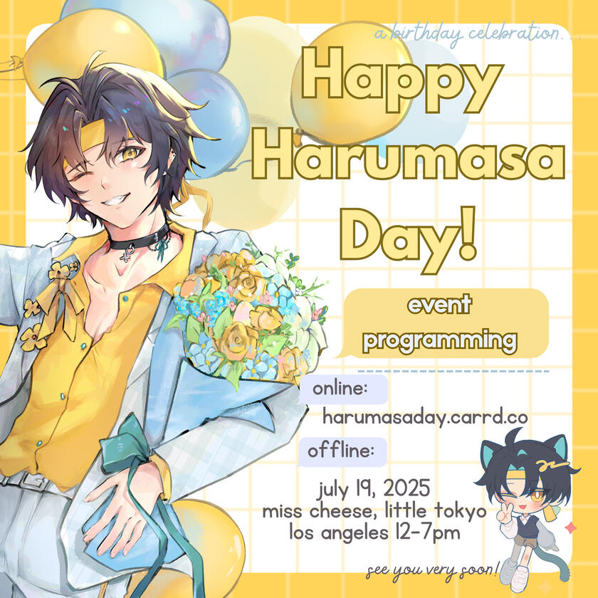 "Happy Harumasa Day!" is an online and offline fan-run event to celebrate the birthday of Asaba Harumasa from Hoyoverse's game, Zenless Zone Zero.The physical event will be held on July 19, 2025 at Miss Cheese Little Tokyo, Los Angeles California.